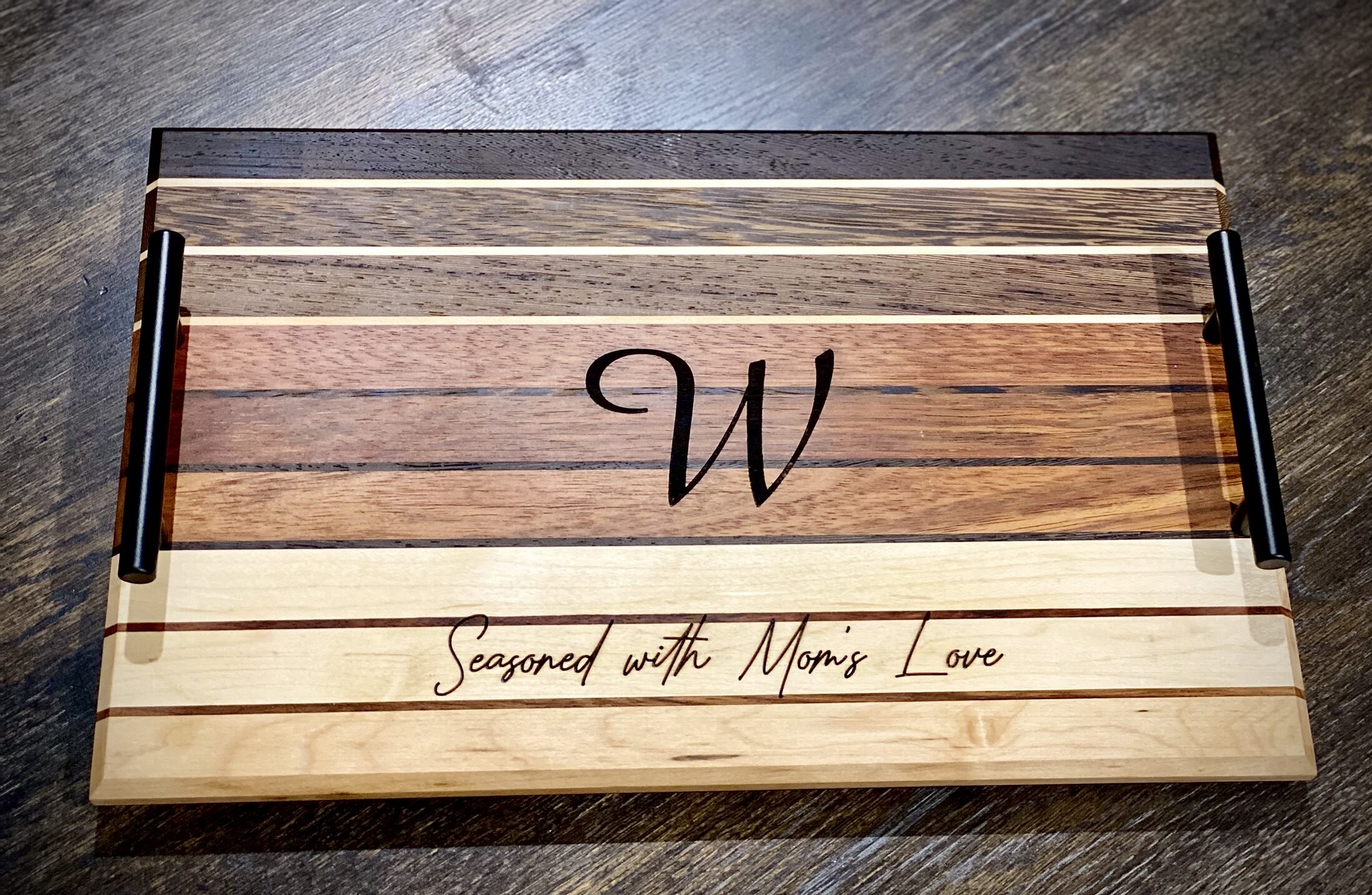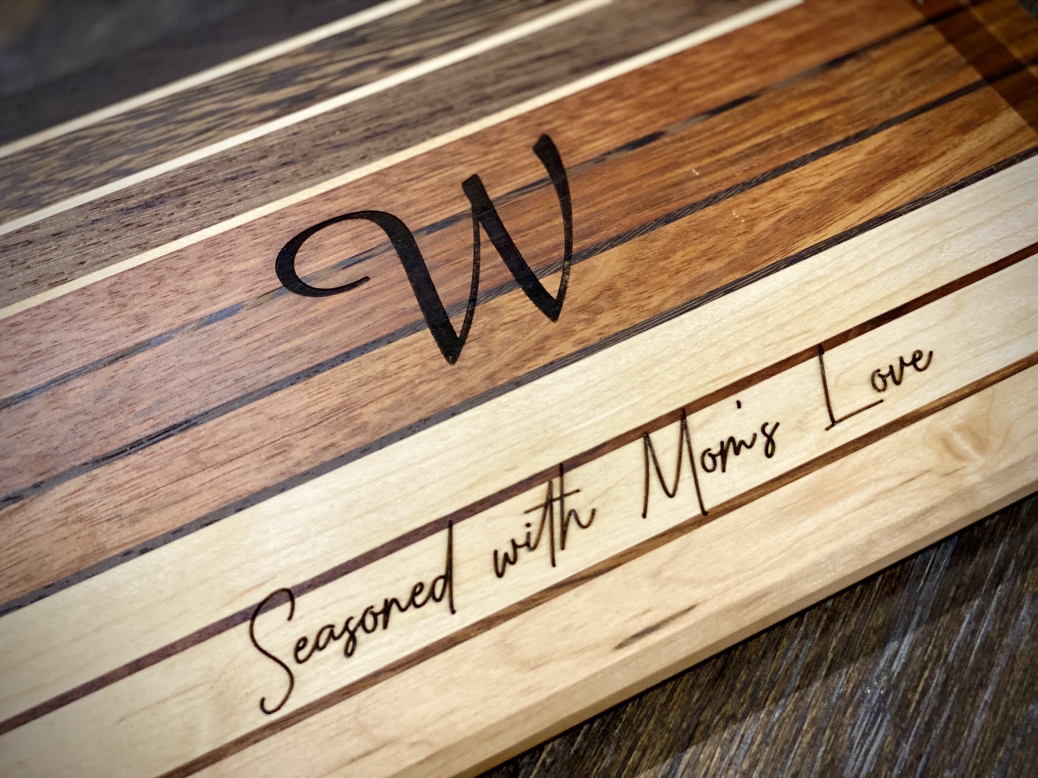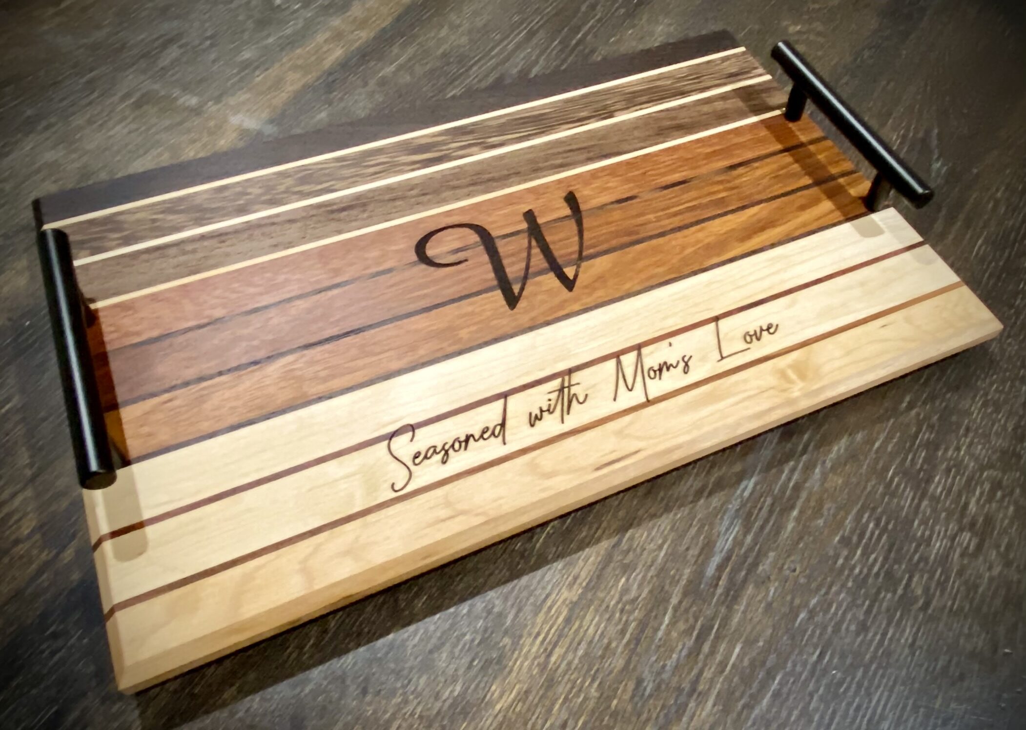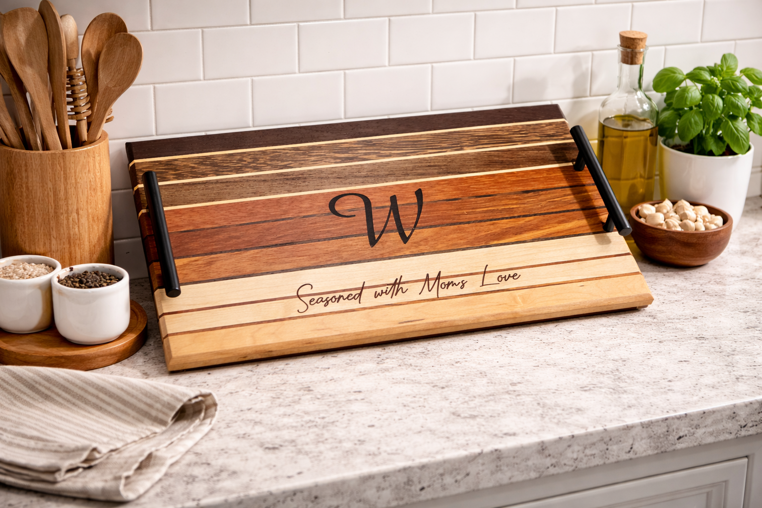 Handcrafted from premium hardwoods and finished by hand, this cutting board blends everyday function with timeless design. Personalizable and built to last, it makes a thoughtful housewarming, wedding, or Christmas gift that will be used and appreciated for years, not tucked into a drawer.